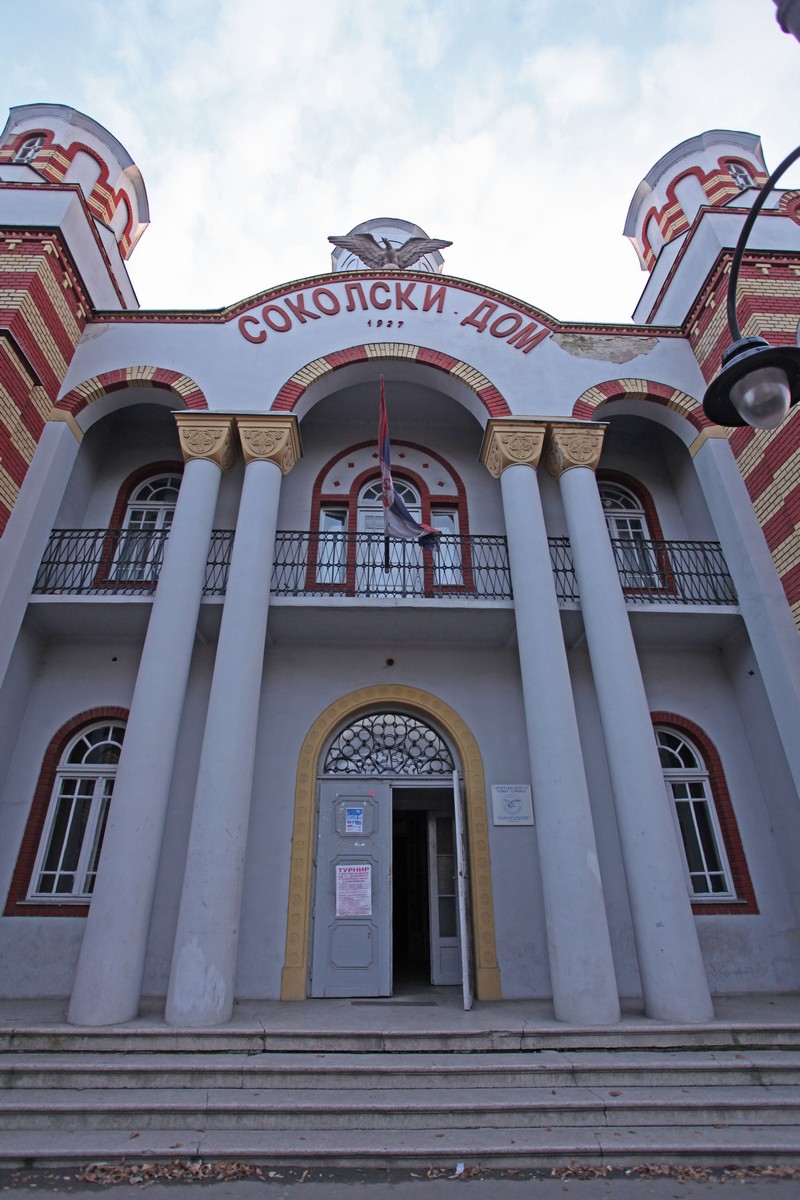 Sokolski dom was built in 1925 in Serbian-Byzantine style with decorative Moravian elements. After the war, the building’s name was changed to ‘Partizan’, and since 1998, the sports centre has born the name ‘Soko’. The old inscription, with the name and a falcon with spread wings is original. Over the last few years, the building has been completely restored.